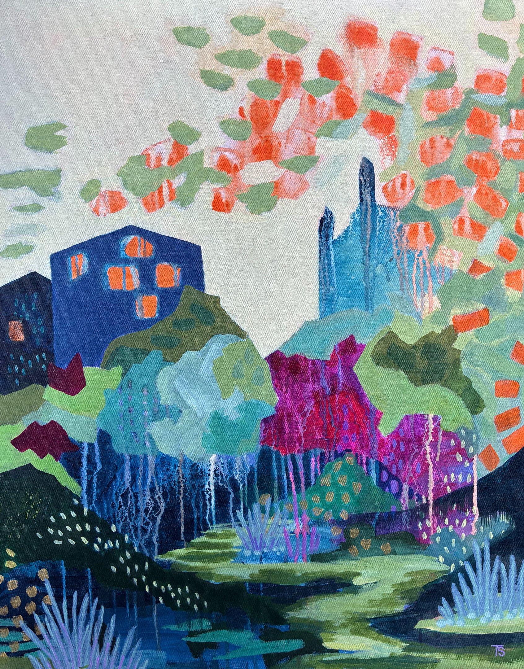 5.Mia's Garden. Acrylic on canvas, 11"x14" (gallery), 2026. (sold)