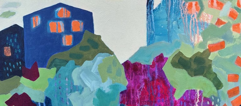 1. Here and Now. Acrylic on canvas, 24"x30" (gallery), 2026. $650